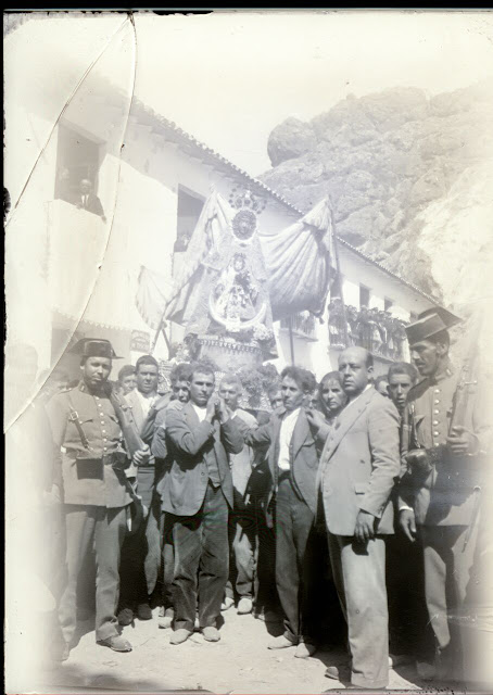 Posiblemente, este pueda ser el primer reportaje fotográfico de "La Romería" de Tíscar, fechado en 1908. Las dos primeras imágenes son fotografías con soporte de vidrio.